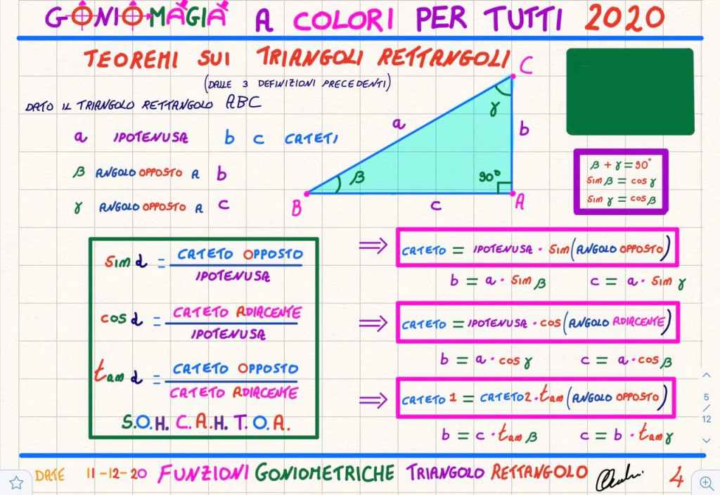 Da queste definizioni si deducono direttamente i tre importantissimi teoremi sui triangoli rettangoli: